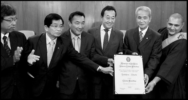 2014年3月24日、サンパウロ市議会で菊地 義治サンパウロ日伯援護協会会長の名誉市民賞授賞式が行われ、会議所より藤井晋介会頭を始め常任理事や関係者、平田事務局長が出席した。