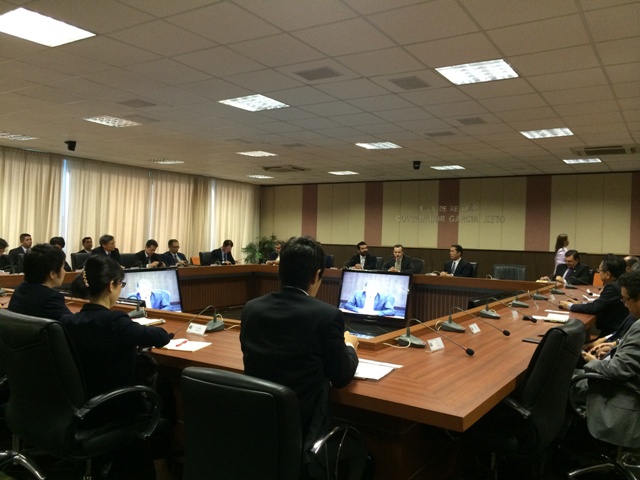 続いてミッションはマットグロッソ州庁舎へ。現地各種メディアに囲まれる中、大会議室では初めにバルボーザ州知事が開会挨拶を行い同州の生産概要等を述べた。引続いて福嶌総領事はこのミッションにはマットグロッソに関心があるあらゆる業種の代表者が参加しており、大変有意義なものになると述べ、最後に岡部会長はマットグロッソは世界の食料供給に重要なプレゼンスがあると述べ、6月24日クイアバでワールドカップ日本対コロンビア戦が行われるマットグロッソ州は日本からの注目を浴びるであろうと語った。その後、マットグロッソ農畜産連盟からは「マットグロッソ州の農業における潜在能力」、マットグロッソ州商工連盟からは「マットグロッソ州の産業開発」、また同州商工鉱山エネルギー局からは「マットグロッソ州のインセンティブ政策」についてプレゼンテーションが各機関の代表者から行われた。その後質疑応答が行われ、アンドレ・マギーでのそれと同じくミッション参加者は多数の質問を行った。