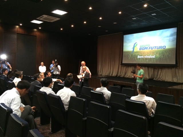 午後ミッションはクイアバ市から120キロ離れたカンポヴェルデ市へ小型飛行機で移動し、同市にあるボン・フトゥーロ グループ社では広大な大豆、トウモロコシ、綿などの農産地や牧場、養魚場、サイロをバスで見学した後、レクチャールームで同社を紹介するビデオが上映された。マットグロッソ州4地域に農場を所有、その合計面積は35万ヘクタールを超える。