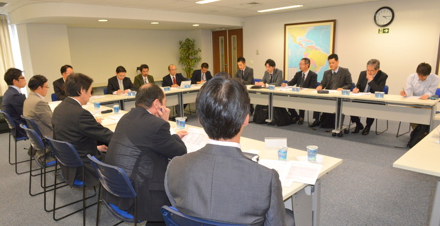 参加者はグループ長/篠原一宇(パナソニック)、副グループ長/古本尋海(NECラテンアメリカ)、委員/伊藤正人(DELOITTE)、林裕孝(EY サンパウロ)、赤澤賢史(KPMG)、久保田孝之(ブラジル味の素、中川和浩氏代理出席)、小谷信之(伊藤忠ブラジル会社)、辻本希世(ジェトロ・サンパウロ)、木村佳秀(丸紅ブラジル会社)、秋吉修司(双日ブラジル会社)、山田修平(ブラジル住友商事会社、松村信治氏代理出席)(欠席)森川金範(豊田通商ブラジル)、田中雅春(ブラジル日清紡)、機能強化委員会/矢部健太郎副委員長(ブラジル三井物産)、在サンパウロ日本国総領事館/坪井俊宣経済班領事、事務局/平田藤義事務局長、天谷浩之アドバイザー、吉田章則調査員、大角編集長