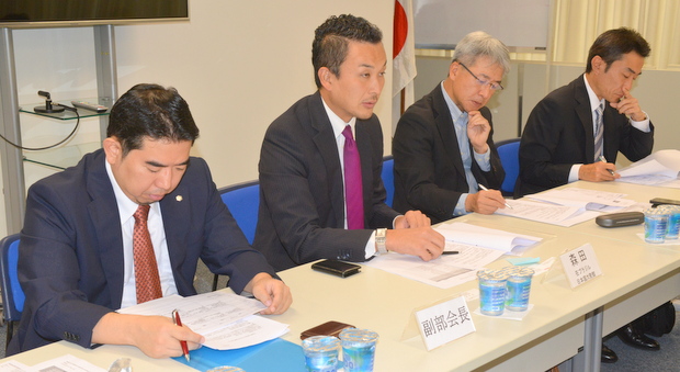 左から森副部会長(キッコーマン)/森田健太郎書記官/西井部会長(味の素)/岡崎副部会長(日清味の素)
