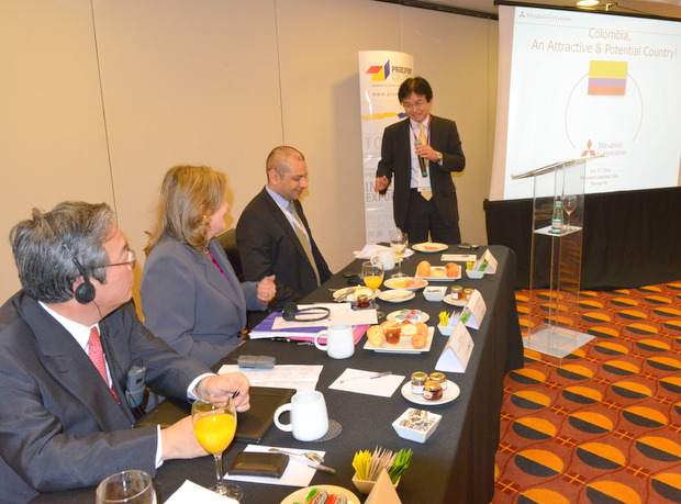 またコロンビア三菱商事の伊藤雅哉社長は、「注目を集めるポテンシャルの国コロンビア」と題して、ボゴタ市には高層ビルが乱立しており、国際空港は非常にきれいで市内にはゴミがほとんどなくて清潔であり、人口は韓国やミャンマー並みで5,000万人弱、中間層の増加に従って消費マーケットが拡大してきていると説明した。