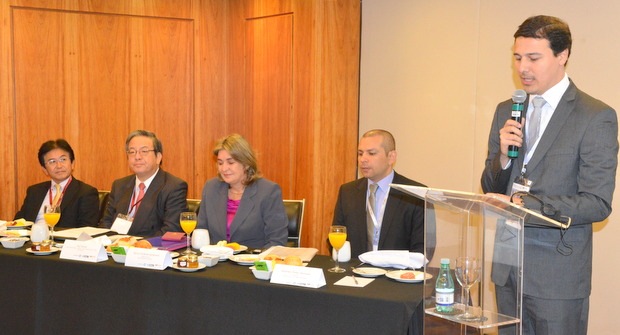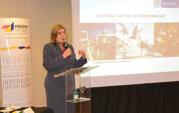 初めにパトリシア・カルデナス在ブラジルコロンビア大使は、「コロンビア、投資チャンスの国」と題して、人口は4,700万人でスペイン語圏ではメキシコに次いで2位で多くの国と国境を接しており、政治ではフアン・マヌエル・サントス・カルデロン大統領が再選され、コロンビア革命軍(FARC)との和平交渉を推進しており、また教育レベルの引上げや社会格差の減少をさらに加速させる。
