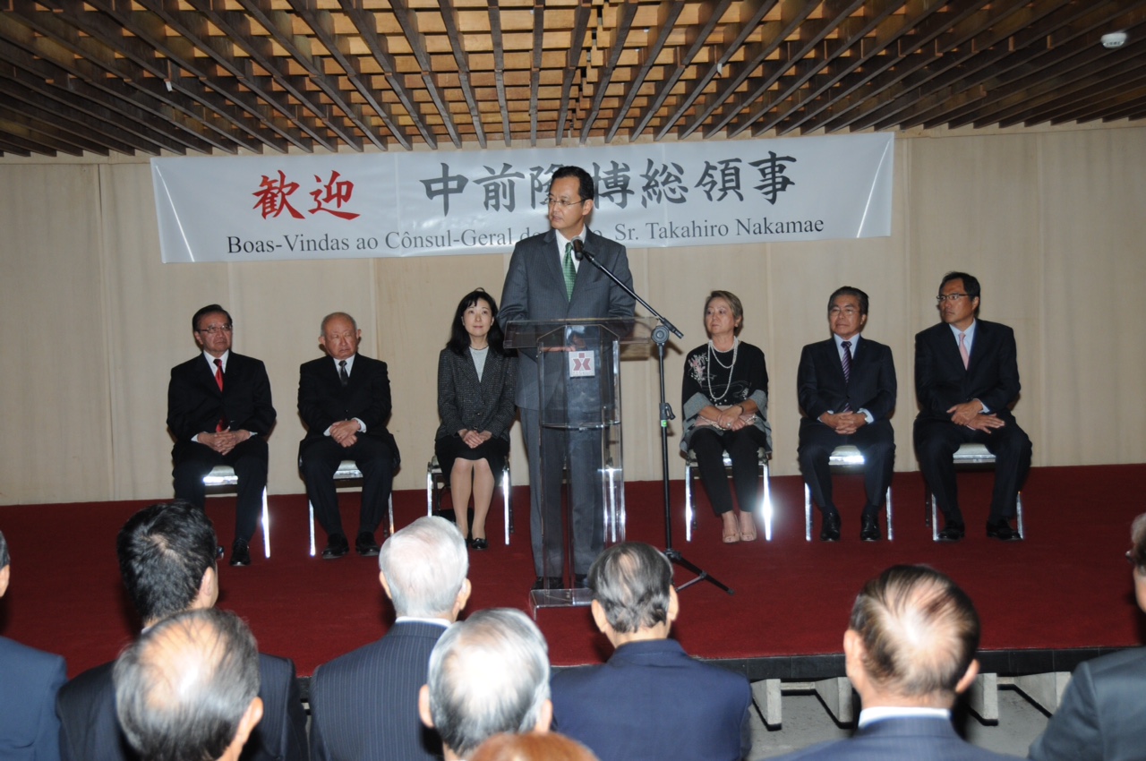 中前総領事の歓迎会に出席 Posted on 2015年6月11日2022年2月24日 by CCIJB 2015年6月11日、日系団体主催で行われた中前 隆博在サンパウロ日本国総領事の歓迎会に関係者や日本企業が多数参集し、会議所からは村田 俊典会頭と平田 藤義事務局長が出席した。 ( Foto: Jiro Produções)