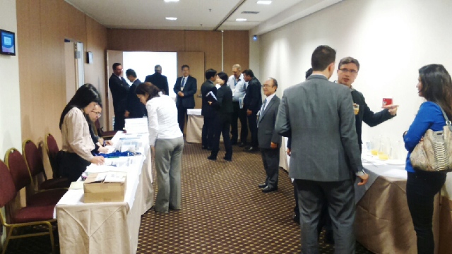 ジェトロ・サンパウロ事務所(大久保敦所長)主催の自動車部品ミッション団は、2015年10月20日、Royal Jardim Boutique Hotelにて、自動車分野での投資・ビジネスセミナーとミッション団とローカル企業による商談会が行なわれ、カマラからは平田事務局長、天谷アドバイザー、そして吉田調査員が参加した。