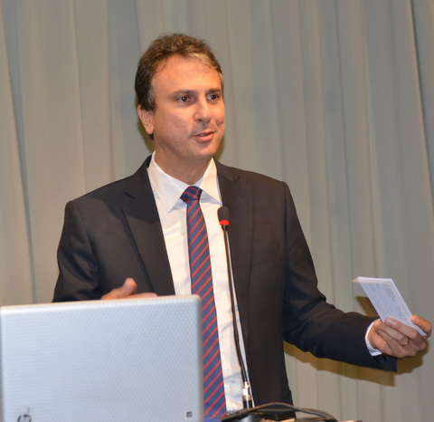 講演中のセアラー州のカミーロ・サンタナ州知事
