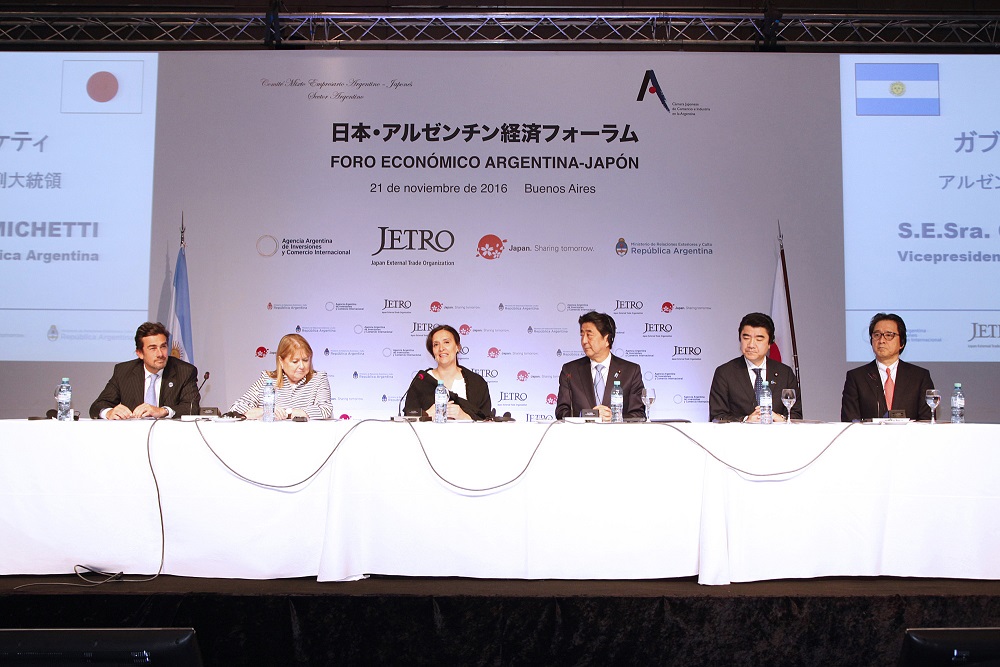 日本貿易振興機構(JETRO)が主催、内閣府、アルゼンチン投資輸出促進庁、アルゼンチン外務省が共催、亜日経済合同委員会および在亜日本商工会議所が後援者となり、21日(月)午後6時から約3時間、日本・アルゼンチン経済フォーラムがヒルトン・ブエノスアイレスで開かれた。