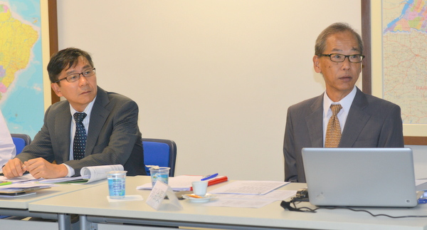 参加者は南村部会長(東洋紡)、青山 副部会長(クラシキ)、豊田副部会長(ユニチカ)、浅川氏(日清紡)、横山氏(オオミ繊維)、平池氏(東レ)、近藤氏(YKK)、蛭子領事(サンパウロ総領事館)、平田事務局長、大角編集担当