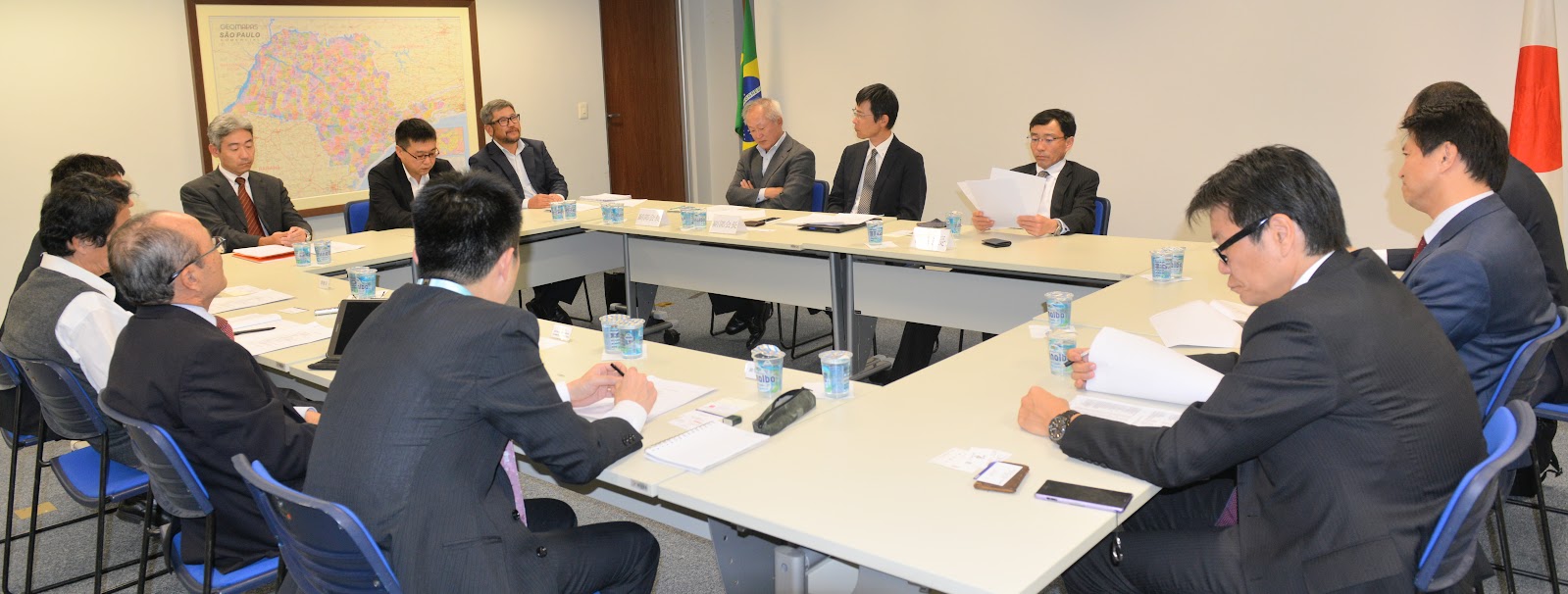 参加者は栗原部会長(ブラジル三井住友銀行)、安田副部会長(Sompo Seguros S.A)、田中副部会長(ブラジル三井住友銀行)、金子氏(ブラジル三菱東京UFJ銀行)、小渕氏(ブラデスコ銀行)、東氏(ブラジル東京海上日動火災保険)、松田氏(みずほコーポレート銀行)、石川氏(トヨタ銀行)、櫛引氏(JBIC)、藍原副領事(サンパウロ総領事館)、平田事務局長、吉田調査員、大角編集担当