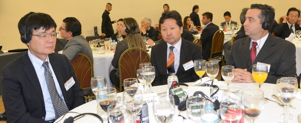 会頭挨拶で松永愛一郎会頭は、会議所活動として8月21日、商工会議所会議室で日本総務省の富永総務審議官と進出ICT企業との意見交換会がICT(情報通信技術)関連の会議所会員企業を含む17名が参加して開催。ICTを活用した防災、ICTデジタルディバイドなどの最新のメディア技術に関連するソリューションテクノロジー展示による日本の最先端技術紹介、中南米諸国でビジネス障害となっている税制、ブロクラシー、治安問題、現地から見た視点での提言など多岐にわたる意見交換会となった。