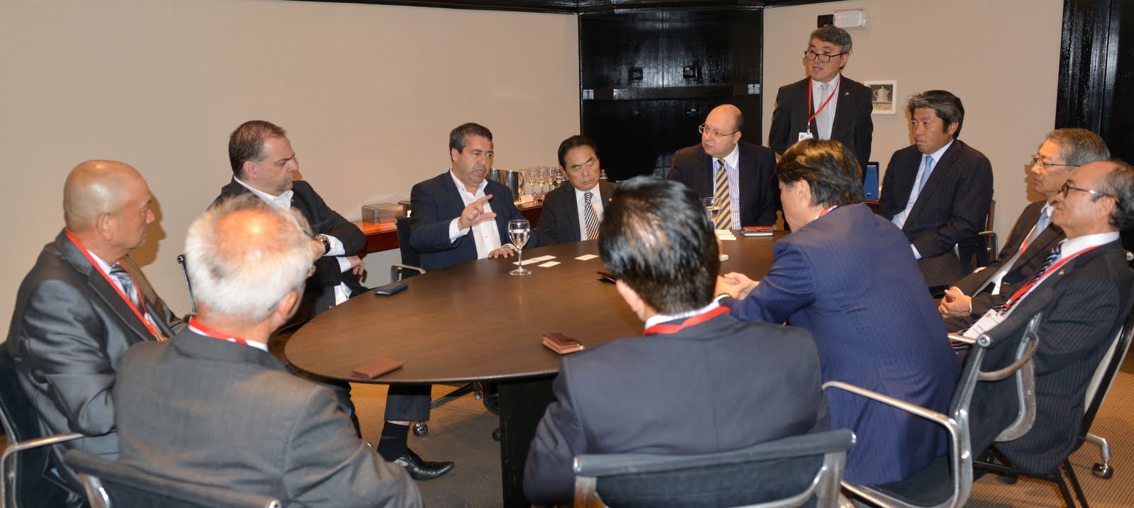 忘年会を前にロナルド・ノゲイラ労働・雇用相、ヒデカズ・タカヤマ連邦下院議員並びに労働・雇用省サンパウロ州支部のエドアルド・アナスタシ総裁、パブロ・ツリン氏、商工会議所から松永愛一郎会頭、土屋信司副会頭、安田 篤 副会頭、井上秀司副会頭、藏掛忠明専任理事、小池淳介専任理事、平田藤義事務局長が会合を持った。