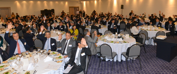懇親昼食会を前に第67回定期総会は2018年3月16日正午過ぎから開催、総務委員会の小池淳介委員長が進行役を務め、初めに松永愛一郎会頭は、2017年度事業・収支決算報告書で、2017年を振り返ってみると、実に74年ぶりの改正となったブラジル労働法近代化が大きなトピックスとしてあげられる。この歴史的な改革が経済的・社会的に及ぼす影響は非常に大きく、これまで企業経営を困難にして、人材育成を阻んできたブラジルの労働法がこのように大規模に改正されたことにより、今後より安定した雇用創出や企業の競争力・生産性の向上が期待される。
