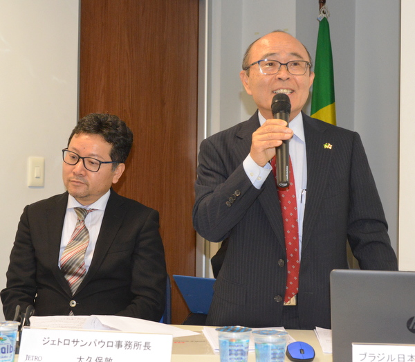 パラグアイ商工省並びに在パラグアイ日本国大使館、ブラジル日本商工会議所、ジェトロサンパウロ事務所共催によるパラグアイセミナーは、2018年10月16日午後4時から6時過ぎまで商工会議所第大会議室に会場一杯の50人以上が参加して開催、初めにジェトロサンパウロ事務所の大久保敦所長が開催挨拶で、パラグアイはメルコスースール加盟国で、ブラジルやアルゼンチンを中心としたメルコスール域内向けの生産・輸出基地として注目を集め、安価な人件費や電力に加えて、保税制度「マキラ制度」、優遇されたメルコスール原産地比率、低い税率などのメリットを活用し、パラグアイに進出する企業が増加。今年8月15日に与党コロラド党のマリオ・アブド・ベニテス氏が大統領に就任、新政権が誕生。オラシオ・カルテス前大統領の開放的な政策を引き継ぎ、官民連携による公共インフラの改善、更なる製造業の企業誘致による雇用拡大などを公約に掲げている。セミナーではペドロ・マンクエーリョ商工副大臣が講演、さらには今年度より新たにパラグアイに設置した、ジェトロ中小企業海外展開現地支援プラットフォーム現地コーディネーターの石田弁護士が同国の投資優遇制度等を紹介。セミナー後には、パラグアイ政府関係者との面談を希望する企業様向けのラウンドテーブルを予定していると説明した。