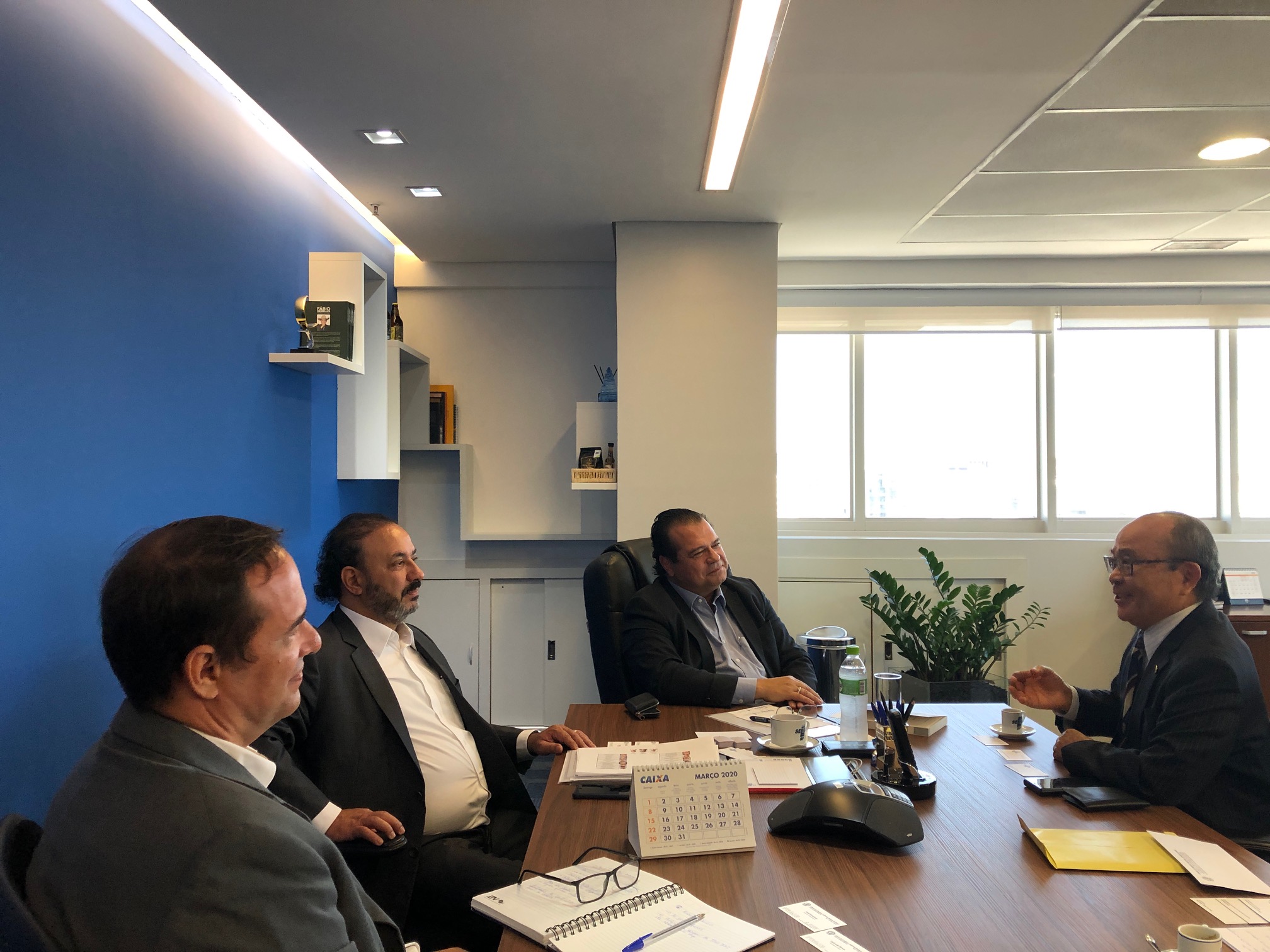 2020年1月27日、サンパウロ州SEBRAE(零細・小企業支援サービス機関)本部を平田藤義事務局長が訪問した。チルソ・デ・サレス・メイレレス(Tirso de Salles Meirelles)評議員会議長、オジエル・エステヴォン(Oziel Estevão)評議員会事務局長ならびにレナト・フォンセカ・アンドラーデ(Renato Fonseca Andrade)議長補佐官らに迎えられ意見交換を行った。会議所からは日下野成次総務補佐が同行した。