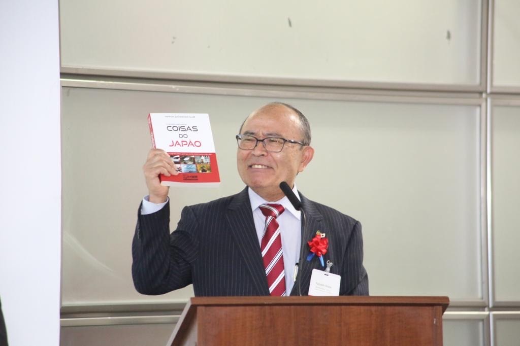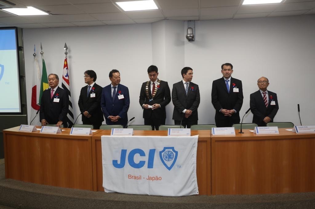 JCI Brasil-Japão は1982年、当会議所内で産声をあげ、親の代名詞として当所はカマロン(Camarão)の名で親しまれている。平田事務局長が最初に祝辞を述べた。また持参した当会議所でベストセラーになっているポル語版の「世界が感謝!日本のもの」を参加者(特に若手起業家達向け)に紹介、日本のテクノロジーでブラジルの競争力を上げようと呼び掛け、心を込めブラジル日本青年会議所(マルセロ新会頭)に1冊贈呈した。
