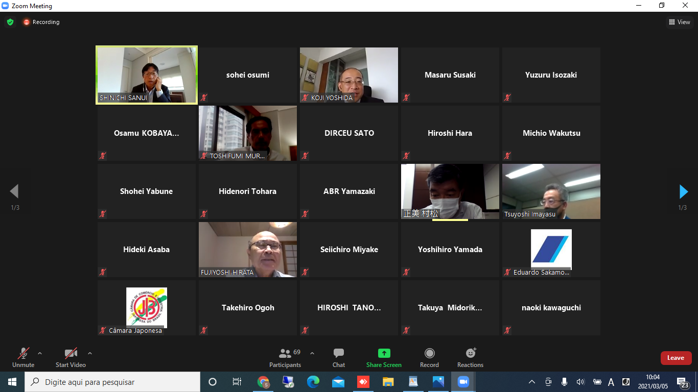 今月19日の総会前の12日に総会の事前資料送付を行うために、質問や変更提案があれば事務局あての送付を要請した。また村田会頭及び平田事務局長は今日の定款変更説明会への参加にお礼を述べ、総会では最低103人以上の参加者が不可欠であり、今日の説明会に出席できなかった会員への出席を要請した。 この後11時~11時50分までポルトガル語セッションが行われた。