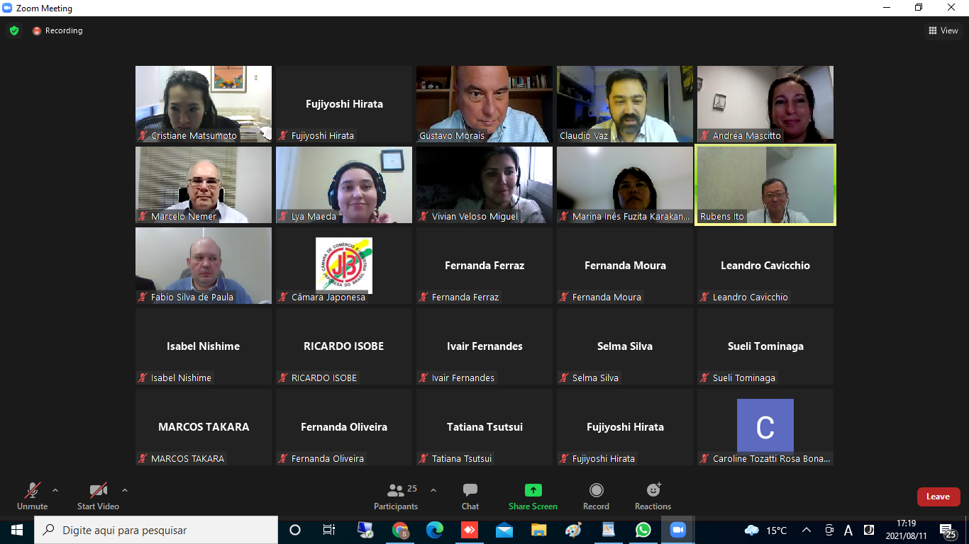 日伯法律委員会(岩尾 玄委員長)主催のオンライン月例会は、2021年8月11日午後4時から5時30分まで約45人が参加して開催、司会はクラウジオ・ヴァス副委員長が務めた。