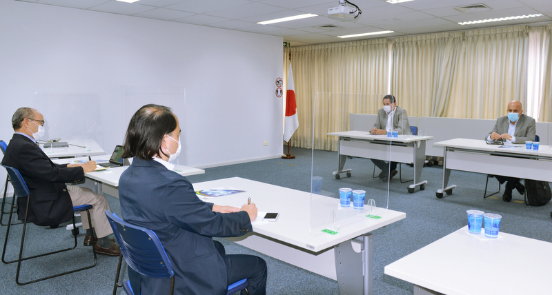 バイア州政府経済開発局のNelson Leal局長、同局のPaulo Guimarães局長補佐が2021年12月14日に商工会議所を訪問、平田藤義理事務局長並びに日下野政次総務担当が応対した。