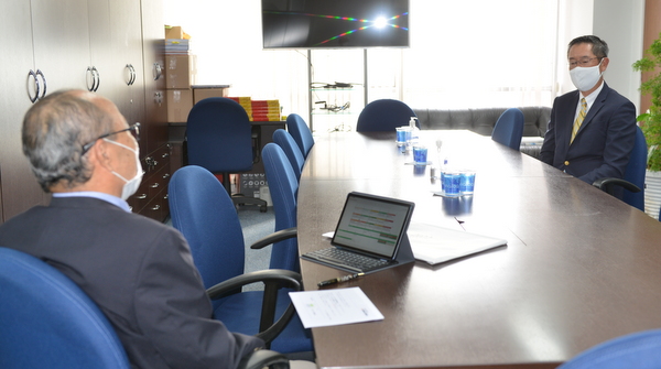 ブラジル日本通運有限会社の藤代社長は、14日に商工会議所を訪問、平田事務局長に22年1月をもってNXブラジル有限会社へ社名変更し、創設以来84年にわたって親しまれて来たシンボルも新たなグループブランドシンボル(https://www.nittsu.co.jp/press/2021/20210716-1.html)に生まれ変わる事を伝えた。