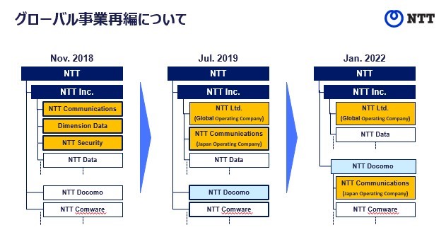 法人事業については、NTT Comに法人事業を統合し経営資源を集中することになる。