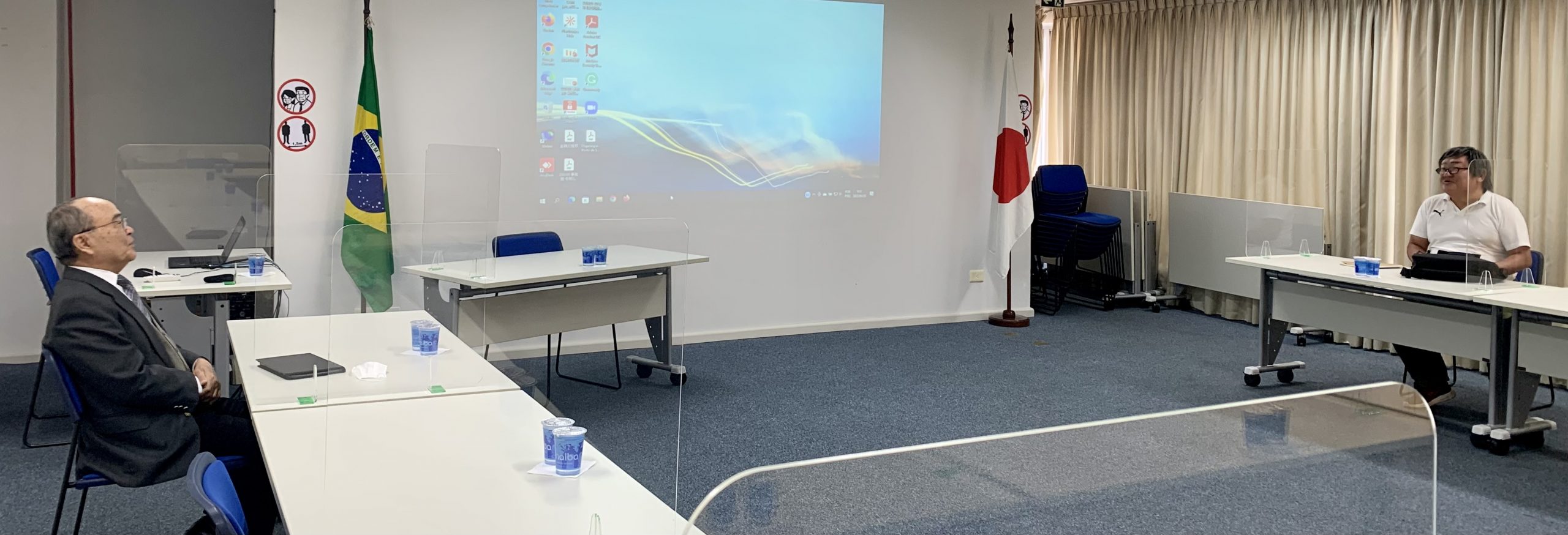 平田事務局長は「友有り、遠方より来たる」と両手で温かく迎え、メデカル機器分科会で大活躍した同氏に対し厚くお礼を述べた。また経営の道場と言われるブラジルでのビジネス経験を活かして、多くの中小企業の進出や日伯の貿易促進に力添えを頂きたいと要請した。