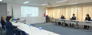 2022年7月12日、フォレスト株式会社の岡本登幸常務取締役及び沖野秀樹営業担当、Forest kk do BrasilのIvan R. Yamasaki国際営業部長が会議所を訪問した。