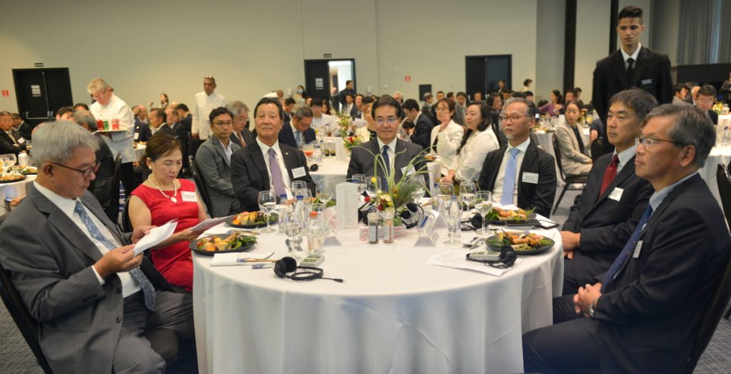 初めに特別参加者として西森ルイス連邦下院議員、桑名良輔総領事、南東部軍本部参謀長のエジソン・マサユキ・ヒロシ少将、ヘナト石川文協会長、援協のジュン・スザキ副会長、日伯文化連盟(アリアンサ)のエドアルド吉田会長が紹介された。