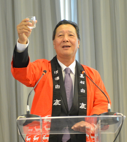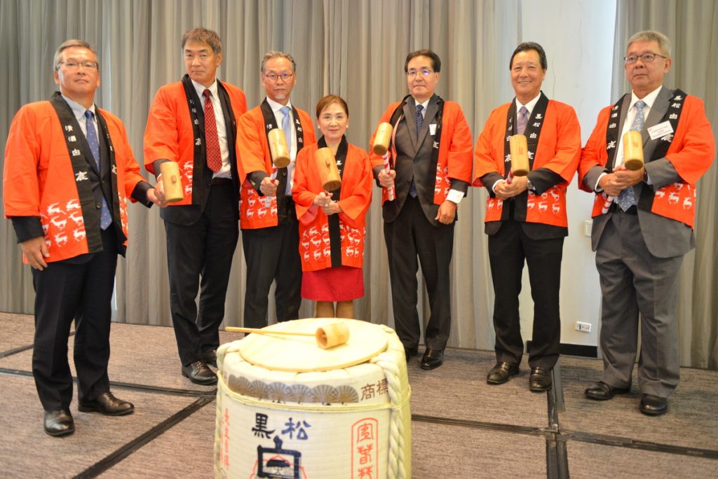 鏡開きは桑名総領事、小寺会頭、木坂副会頭、ワグネル鈴木副会頭、田辺副会頭、西森下院議員及びブルーツリーホテルの青木智恵子社長が壇上に立ち、西森下院議員が日系社会慣例の乾杯の音頭を取って、ウサギのような跳躍の年になるようにテーブル席の皆と乾杯した。