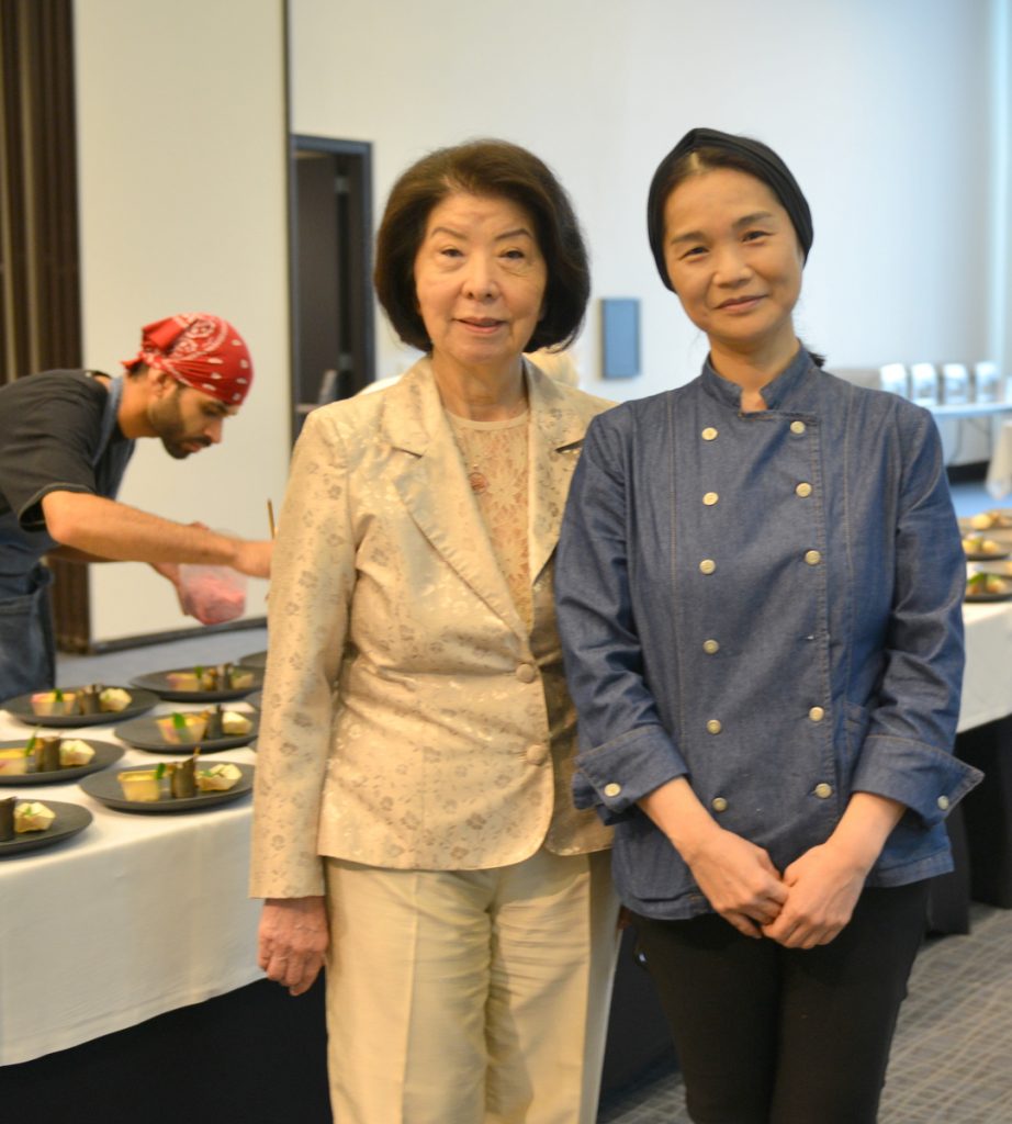 左からブルーツリーホテルの広瀬純子取締役、お節料理提供のレストラン藍染オーナーシェフの白石テウマさん