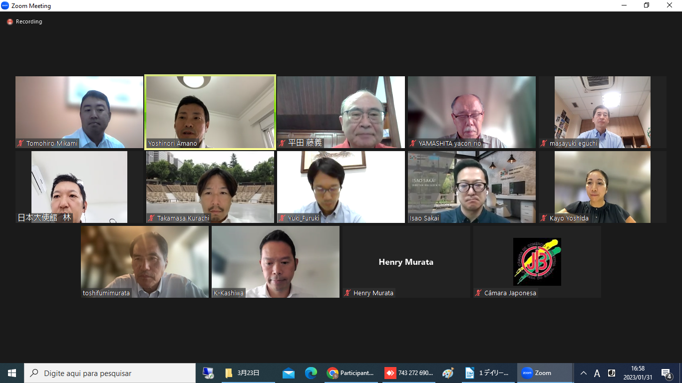 今年の部会のトップを切ってコンサルタント部会(天野義仁部会長)のオンライン懇談会は、2023年1月31日午後4時から5時まで日本とブラジルから13人が参加、司会は天野部会長が務めた。