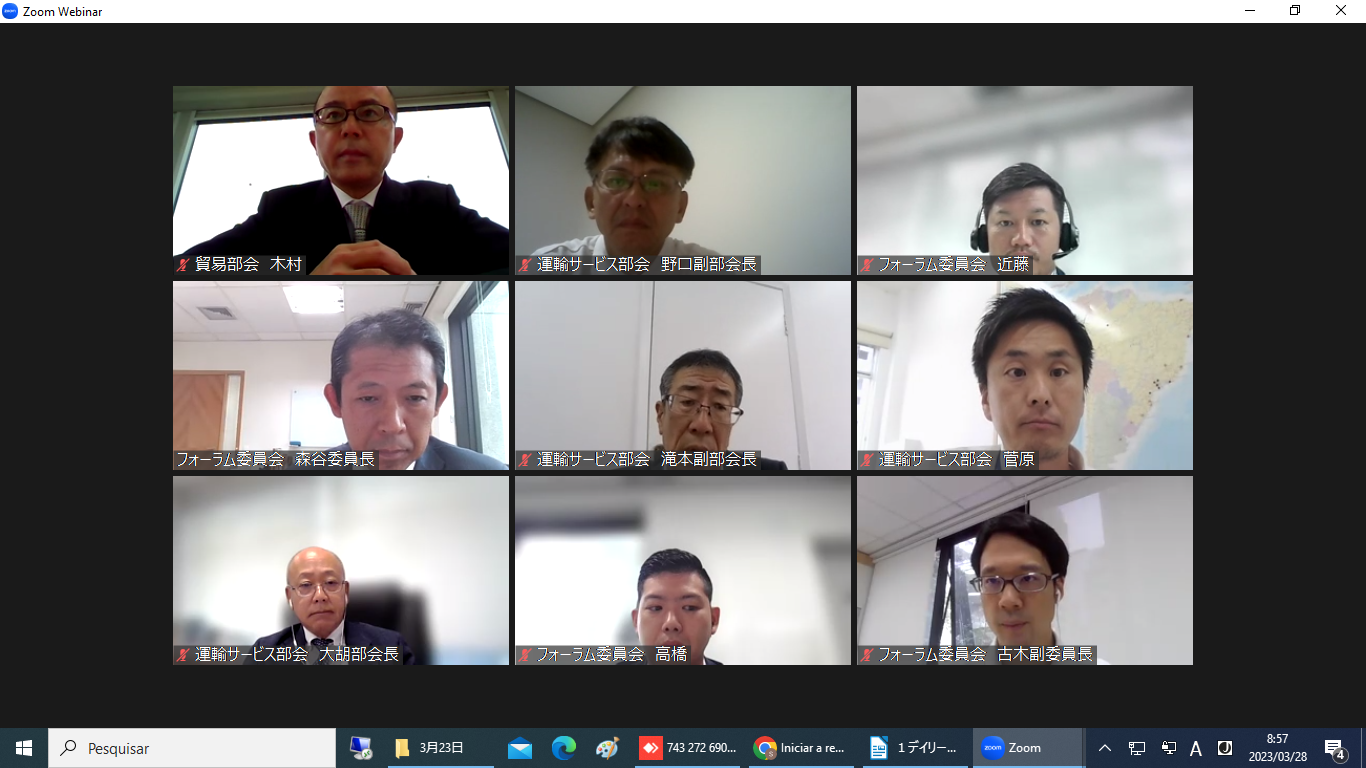 貿易部会並びに運輸サービス部会共催の2023年上期の第3回オンライン部会長フォーラムは、2023年3月28日午前9時から10時まで開催、司会は森谷フォーラム委員長が務めた。