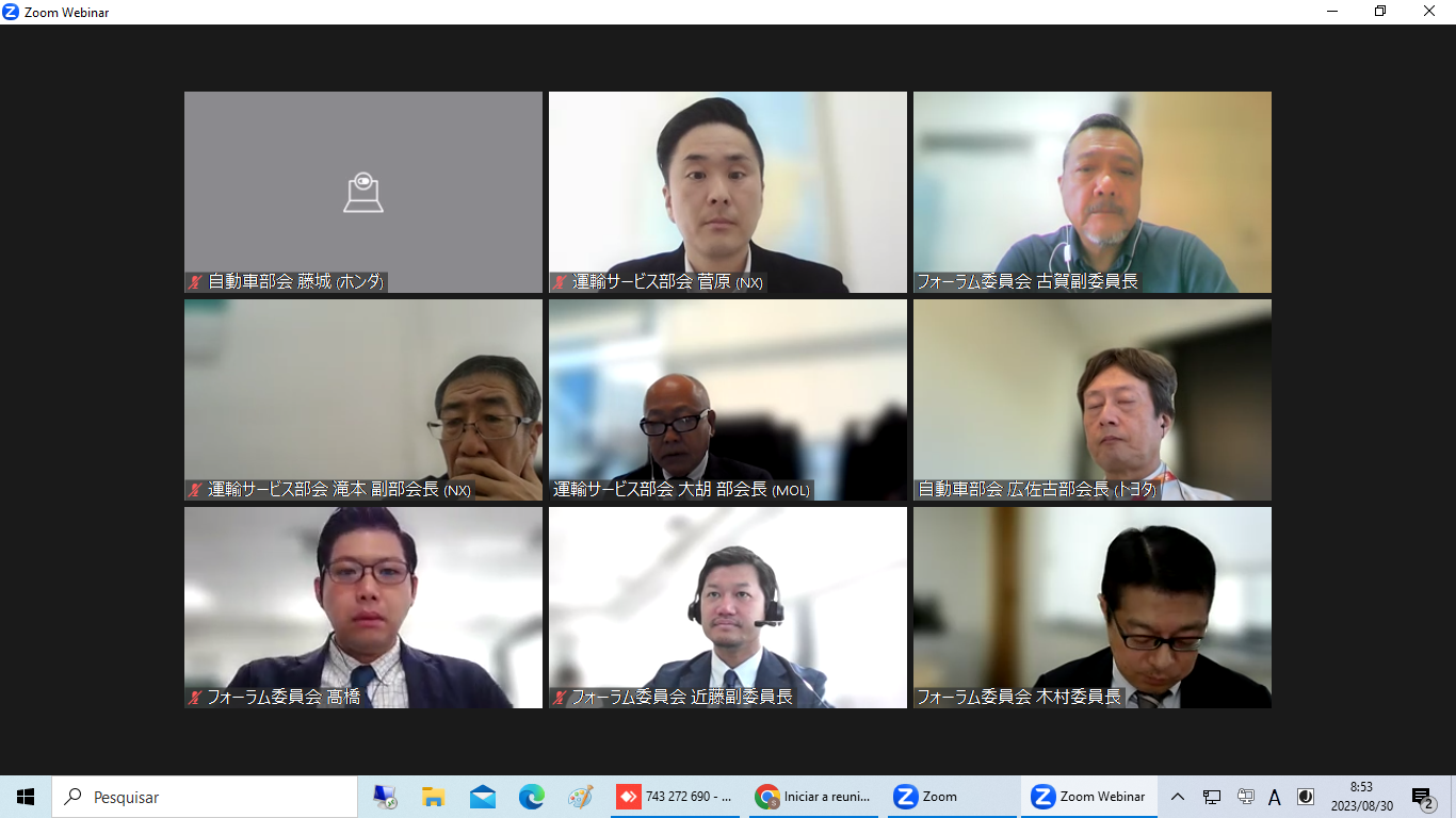 2023年下期の第2回フォーラムは、2023年8月30日午前9時から10時3まで自動車部会並びに運輸サービス部会共催で開催。司会は木村委員長が務めた。
