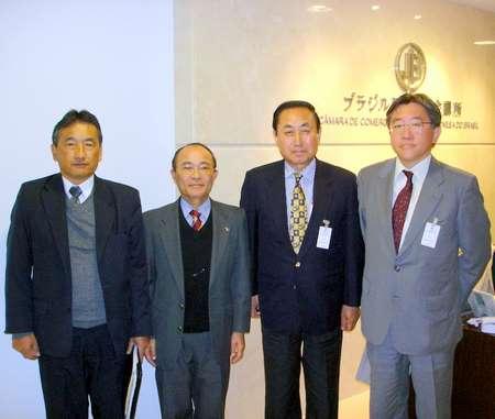左からブラジル日本研究者協会(SBPN)の佐藤直専任理事/仁井山進会長/佐々木弘一顧問/会議所の平田藤義事務局長/渡部一誠組織委員会副会長