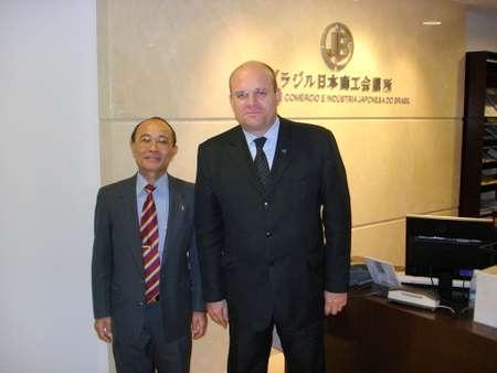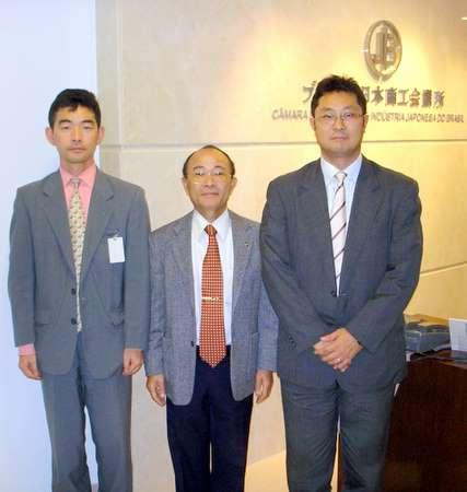 ジェトロサンパウロセンターの井澤俊和事業部デレクター並びに後任の兵頭栄寿新デレクターが6月6日に商工会議所を表敬訪問、平田藤義事務局長に井澤デレクターが帰国挨拶、後任の兵頭デレクターは着任挨拶を行なった。