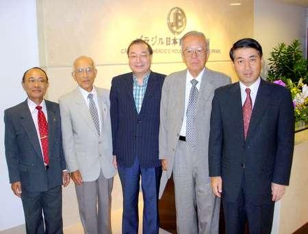 平田事務局長/山田監事会議長/ダイキン工業の岡田茂男顧問/田中会頭/窪田日系社会委員長