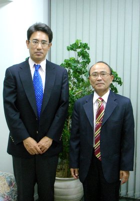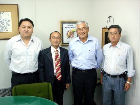 サンパウロ市近郊のスザノ市役所の観光・労働・経済開発局のカルロス・ワタナベ局長、商工業局のジョージ・ウエノ重役,レイナルド・カツマタ補佐が3月15日に商工会議所を表敬訪問、平田藤義事務局長と意見の交換を行なった。