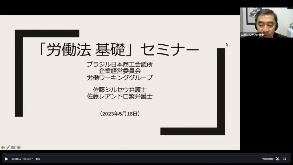 企業経営委員会(島田領委員長)労働ワーキンググループ(梅田孝彦グループ長)の「労働法 基礎」オンラインセミナーは2023年5月16日午後6時から7時30分まで100人が参加して開催。講師は佐藤ジルセウ弁護士。