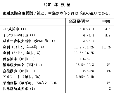 2001年はレーヨン綿、ポリ綿は値上げあるのみ。インフレ予想6%で同率切り下げが常識のところからレアル貨アップは必至。業界単独値上げは不可能。今年もしんどい年になりそうである。