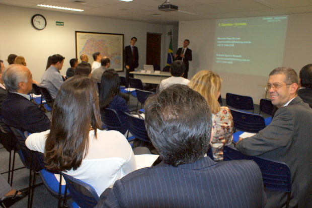 また港湾戦争と呼ばれていたICMS税もエスピリット・サント州やサンタ・カタリーナ州の州知事が抵抗して紆余曲折があったが、とりあえず輸入品に対するICMS税の一律4.0%に漕ぎ着けたが、今後は国産品などに対しても連邦政府に統一税率を訴えてゆき、税制改革を進めると強調、移転価格税制は非常に遅れたが改善させ、今後も連邦政府に改善の要請をすると説明、また密輸や治安などについても問題が山積みしているが、連邦政府と連携してFIESP連盟から要請してゆくと説明、その後活発の質疑応答が行われて意見交換会は成功裏に終わり、その後でFIESP連盟が立派な食事を提供して、食事をしながら色々な意見交換が行われた。
