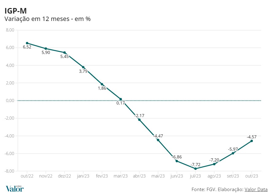 今年初め10か月間の累計総合市場物価指数(IGP-M)はマイナス4.46%、10月の過去12カ月間の累計総合市場物価指数(IGP-M)はマイナス4,57%を記録している。