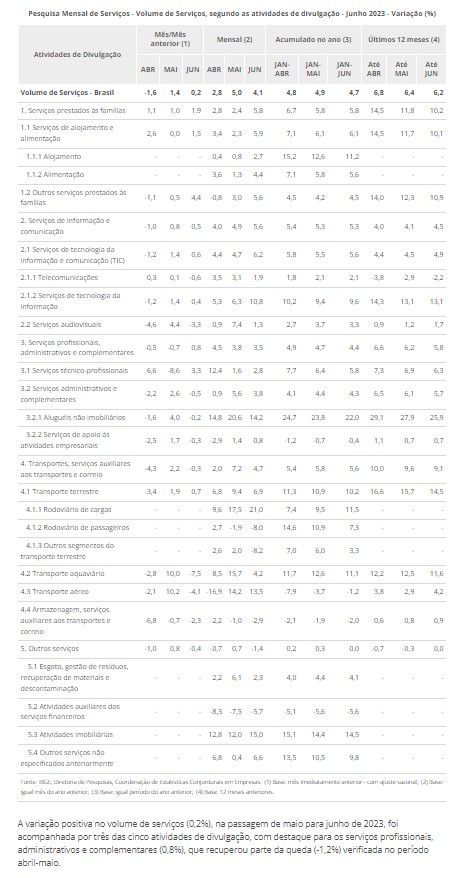 2023年7月のインフレ指数の広範囲消費者物価指数(IPCA)は、6月の0.08%のデフレから反転して0.12%のインフレを記録、今年初め7か月間の累積IPCA指数は2.99%、7月の過去12カ月間の累積IPCA指数は3.99%と6月の3.16%よりも大幅に上昇している。