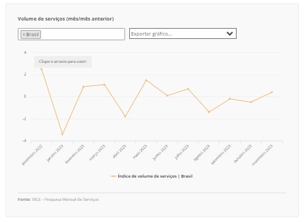 2022年12月~2023年11月迄のサービス部門提供量の月間推移