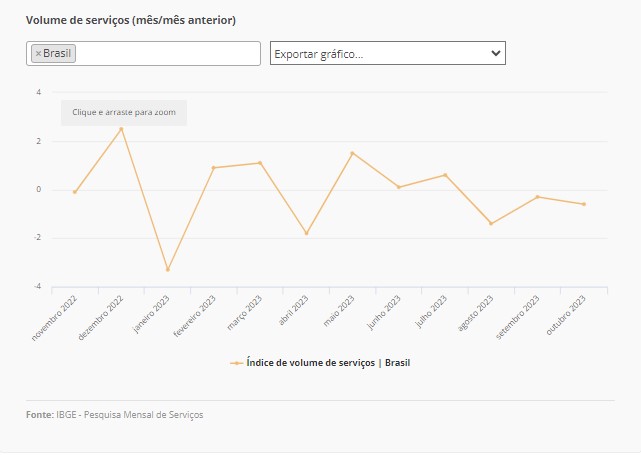 2023年11月の国庫庁のインフレ指数を差引いた実質歳入総額は前年同月比マイナス0,39%に相当する1,799億3,200万レアルに留まったが、今年初め11か月間の累積歳入総額は前年同期比マイナス0,66%に相当する2兆8,600億レアルであった。